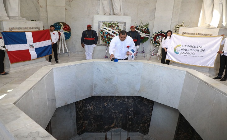 Santo Domingo, RR -La Comisión Nacional de Energía (CNE), depositó una ofrenda floral en el Altar de la Patria, en ocasión del Mes de la Patria y el 179 aniversario de la Independencia Nacional, en un acto en el que se reconoció el valor y la entrega de hombres y mujeres que se sacrificaron por una mejor nación.